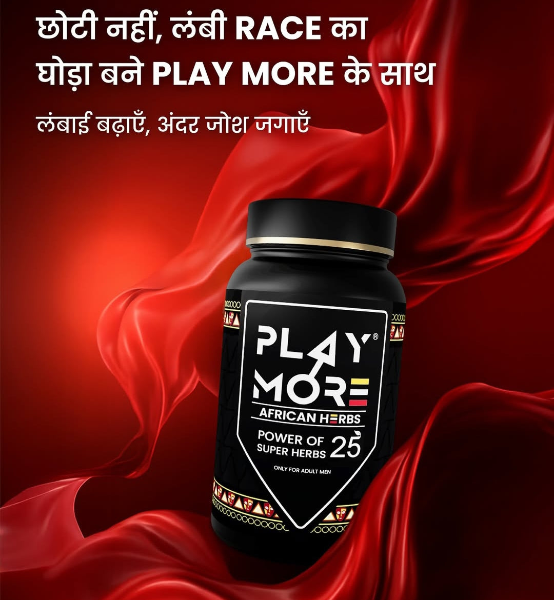 Play More एक भरोसेमंद पुरुष हेल्थ सप्लीमेंट है, जो ताकतवर अफ्रीकी जड़ी-बूटियों से बना है। यह आपके स्टैमिना को बढ़ाने, पुरुष इच्छा शक्ति को सुधारने और संपूर्ण प्रदर्शन को बेहतर करने में मदद करता है। प्ले मोर ने दुनिया भर में लाखों पुरुषों की मदद की है। अब यह भारत में भी उपलब्ध है – अफ्रीकी जड़ी-बूटियों की परंपरागत शक्ति, अब आपकी आधुनिक ज़रूरतों के साथ।